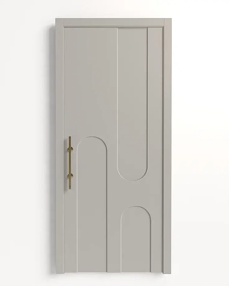 Каркасно-щитовая дверь из массива сосны и МДФ в эмали с актуальной фрезеровкой, может быть укомплектована дополнительной шумоизоляцией. Полотно двери усилено итальянскими стабилизаторами.